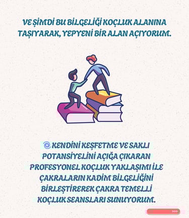 ICF Temelli Bir Süreç: Profesyonel koçluk ilkeleriyle yapılandırılmış, çakraların bilgeliğini başlangıç noktası olarak rehber alan bir içsel keşif yolculuğu.